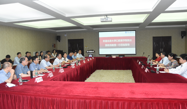 郭传瑸院长介绍了北大口腔医学院的基本情况,并对我校的口腔专业的建设发展提出了相关建议和意见。他指出学院的发展要抓住机遇,从专业建设、科学研究和师资队伍等方面梳理短板和不足,集中力量解决制约学院发展的瓶颈。