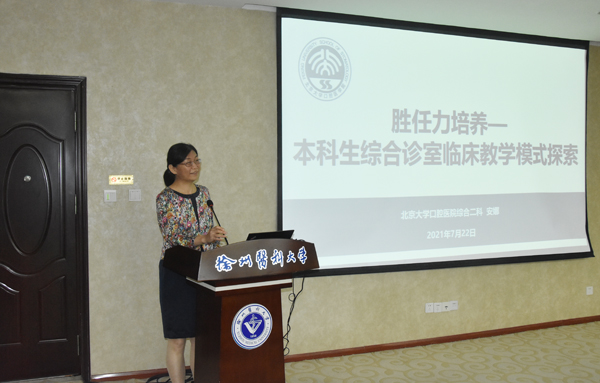会上,双方还就办学理念、口腔医学教育及帮扶内容展开广泛交流。签约仪式后,以岗位胜任力为导向的教学体系建设研讨会召开,北京大学口腔医学院教育处董美丽处长以《北京大学口腔医学本科教育的守正与创新---国家一流本科专业建设点情况汇报》为题,为我校师生进行了讲解。北京大学口腔医学院综合治疗二科安娜主任则着重为大家介绍了《胜任力培养--本科生教学诊室教学模式探索》。两位专家的报告精彩纷呈,对于学院的专业建设和学生培养提供了很好的标杆示范。会上,老师们踊跃提问、积极探讨,气氛活跃。