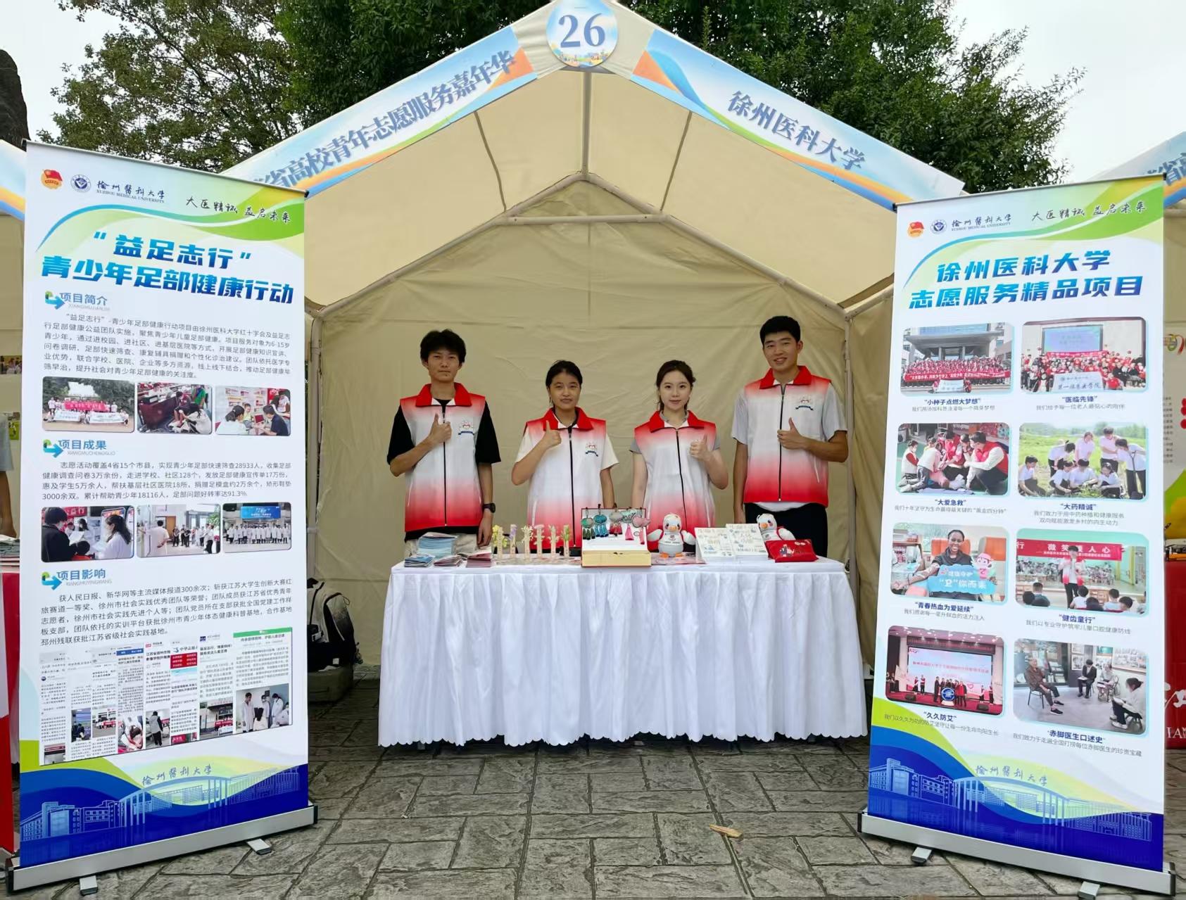 此外,省高校青年志愿服务嘉年华在南京审计大学同期举办,我校代表团展示了志愿实践相关香包文创、宣传手册、科普书籍等作品,与全省其他84所高校开展广泛交流。