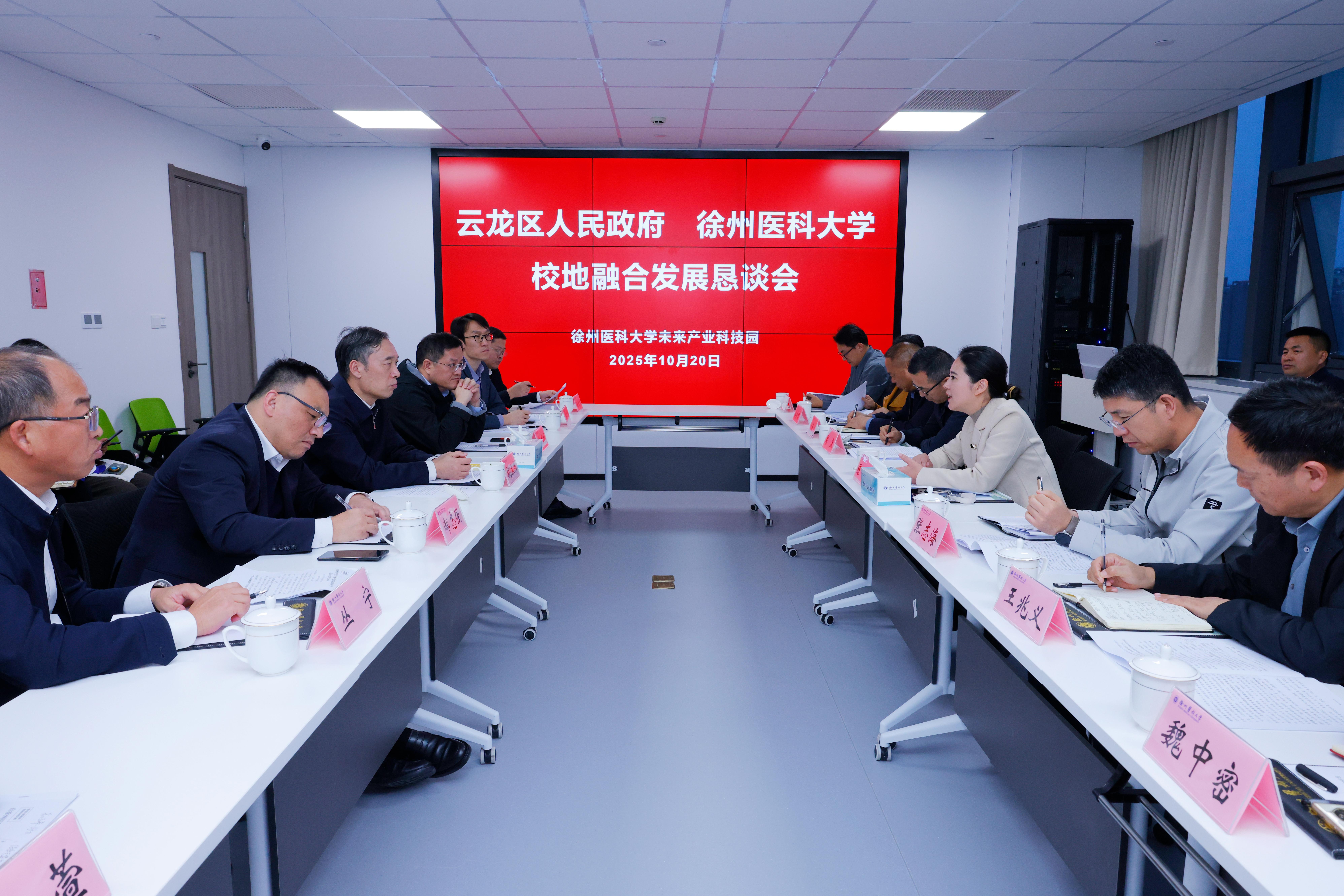 10月20日下午,我校与云龙区人民政府在徐州医科大学未来产业科技园举行校地融合发展恳谈会。云龙区委书记陈婕,云龙区委副书记、副区长张志海,区委常委、常务副区长周泉,校党委书记祝木伟,副校长曹君利出席会议。学校及云龙区有关职能部门负责人参加会议。会议由陈婕主持。