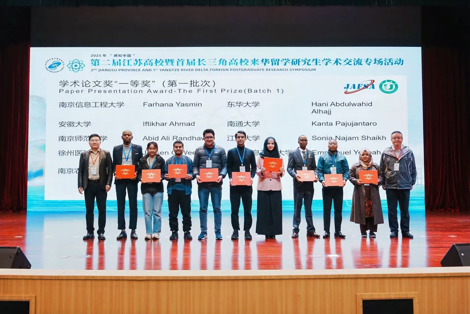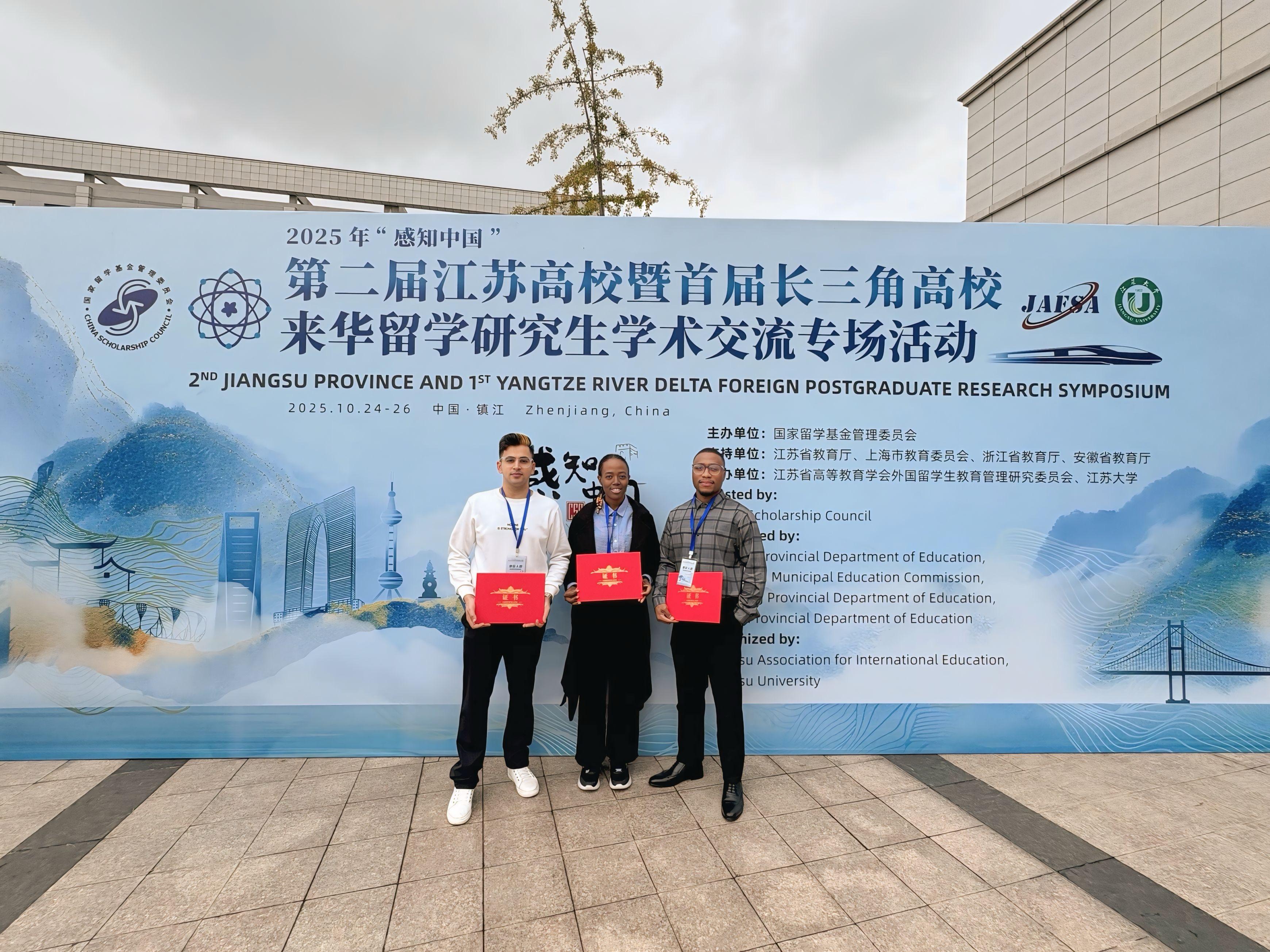 10月26日,2025年“感知中国”第二届江苏高校暨首届长三角高校来华留学研究生学术交流专场活动在江苏大学圆满落幕。活动得到了长三角各省市教育厅的大力支持,共有来自上海、江苏、浙江和安徽的55所高校的400余名中外研究生参加。我校教师带领3名论文入选留学研究生参会,在本次专场活动的学术评审环节中他们表现突出:基础医学院博士生JENSEN G WEEDOR荣获“学术论文奖”一等奖,同时斩获“最佳学术墙报奖”;公共卫生学院博士生MACKAY LOUISA ESI和第一临床医学院硕士生SYED HASEEB ZIA荣获“优秀奖”。