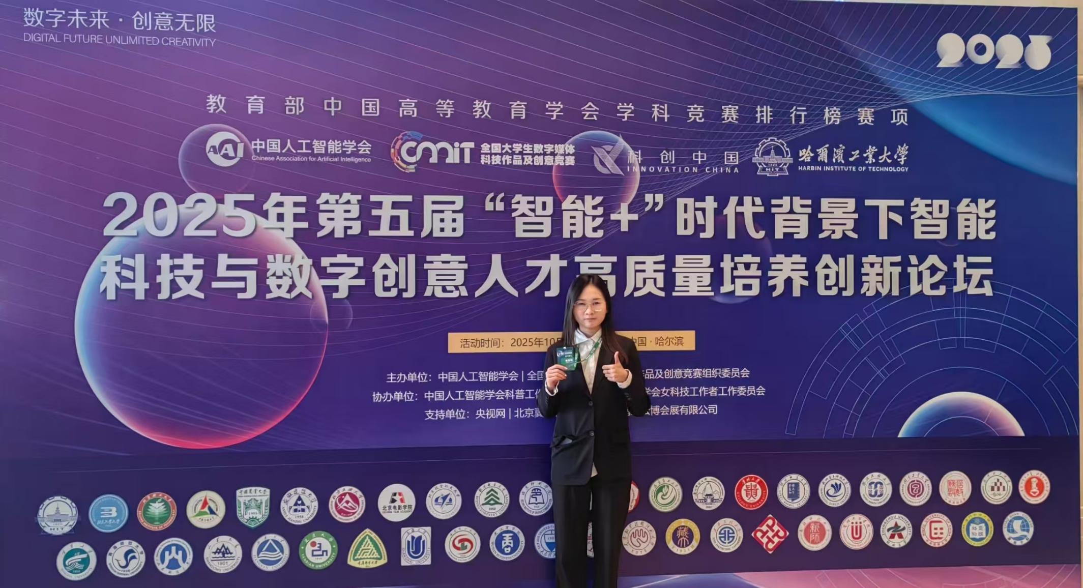 在10月25日至26日举办的2025年(第十三届)全国大学生数字媒体科技作品及创意竞赛决赛中,我校获得了国赛二等奖1项、三等奖5项,创该赛事获奖历史新高。
