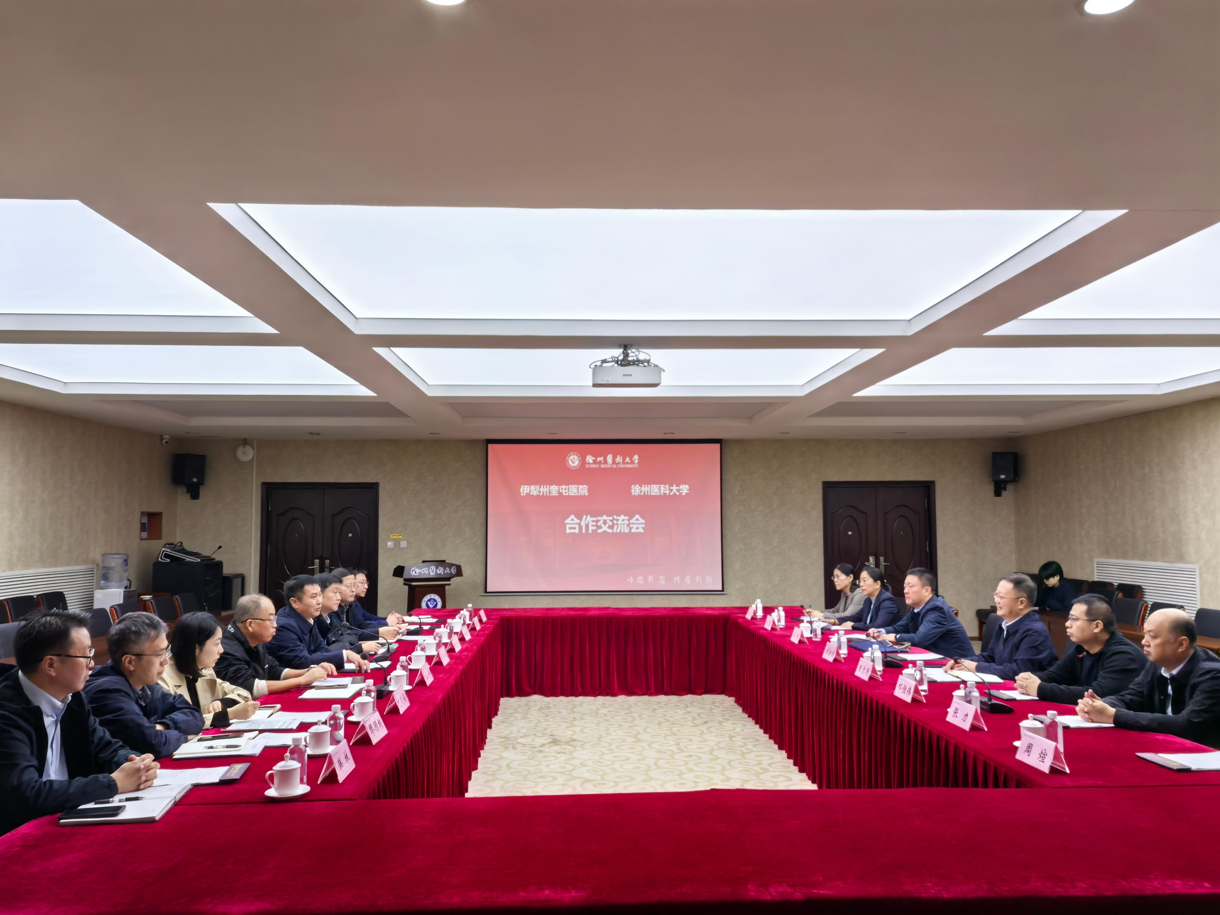 11月5日上午,伊犁哈萨克自治州奎屯医院党委书记陈忠民一行来我校洽谈交流。党委常委、副校长刘慎军主持座谈会,校长办公室、人事处、教务处、科学技术处、研究生院、合作发展处、徐医附院相关负责人参加会议。