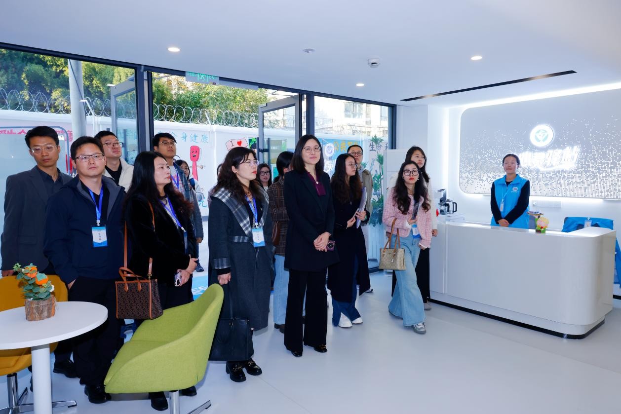 全省思政骨干分4组跟随社区主理团学生讲解员实地走访了“i里办”学生社区服务中心、知行社区、至成社区、跃动社区、心灵驿站、创客空间等7大功能区打造的“5分钟生活圈”。现场,社区内心肺复苏技能培训、网络思政直播课堂、“青春会客厅”信仰公开课、“优学计划”学业辅导、人社政策进校园、支教团座谈会、科创项目路演、中药文化集市等10余场活动正生动开展,内容涵盖思想引领、专业实践、生命教育、文化体验与创新创业等多个维度。在中药文化集市中,思政骨干们饶有兴致地驻足体验,详细了解我校学生原创的香包、足浴包、养生茶等中医药文创展品。此外,培训班还深入生命科学馆、赤脚医生博物馆、植物园等“一站式”学生社区情境教育场所,全面了解我校学生社区在建设理念、空间布局、设施配置与运行机制等方面的创新实践,沉浸式体验具有医学人文特色的育人环境与社区文化,并对我校打造“最懂青年”的学生社区的系统设计与扎实成效给予高度赞誉。