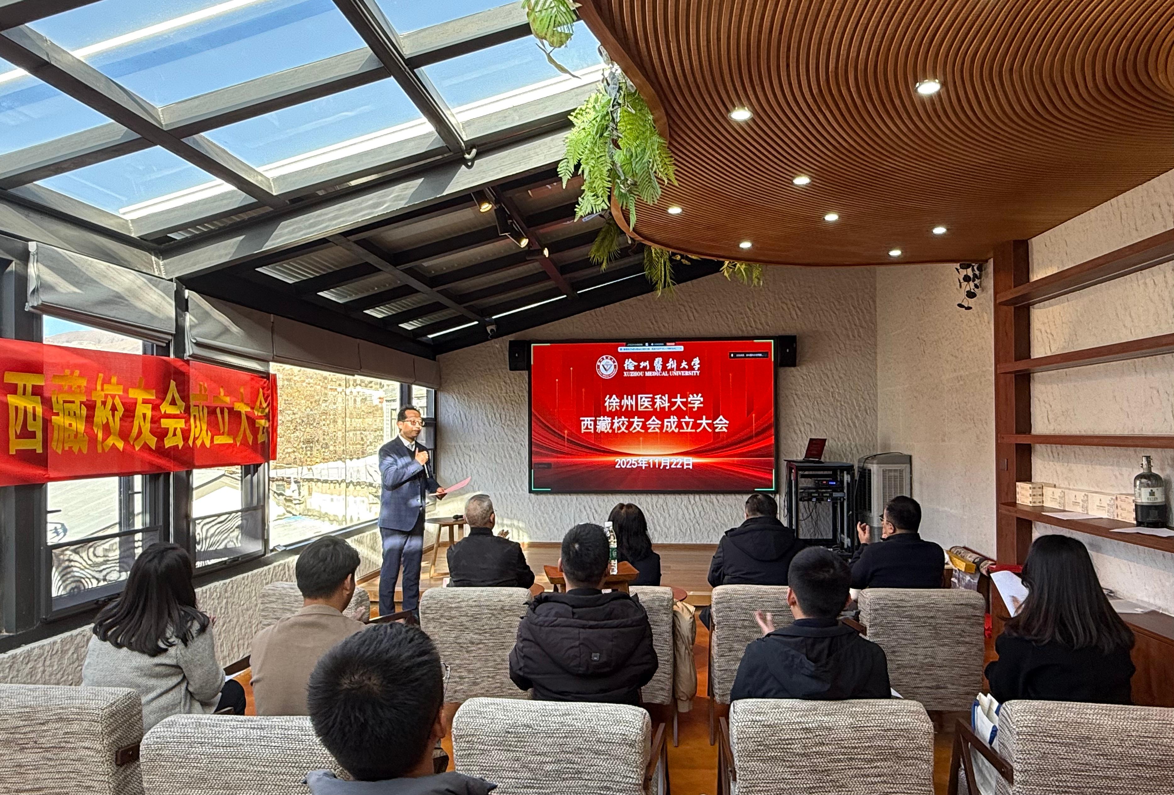 11月22日,徐州医科大学西藏校友会成立大会在拉萨举行。徐州医科大学高端人才引进办公室(临)主任兼马克思主义学院党总支书记、西藏自治区党委宣传部舆情信息处副处长(赴藏博士服务团成员)陈玮,学校合作发展处处长徐继承、副处长王磊,中国矿业大学西藏校友会名誉会长魏保军,学校西藏地区校友代表出席会议。