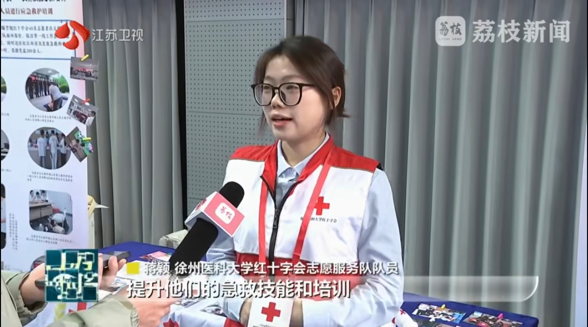 我校志愿者蒋颖在展会现场接受了荔枝新闻等媒体的采访,她说“我们发现城市中的交通从业人员遇见应急情况的概率会非常大,所以聚焦了这一人群。很多人即便掌握了急救技能,也不敢救,为此团队不仅做急救科普,还做法律常识的普及,告知他们《中华人民共和国民法典》规定,因自愿实施紧急救助行为造成受助人损害的,救助人不承担民事责任。作为医学生,用自己的专业能力回馈社会,帮助大家提升急救素养和院前急救成功率,是一件很幸福的事。”