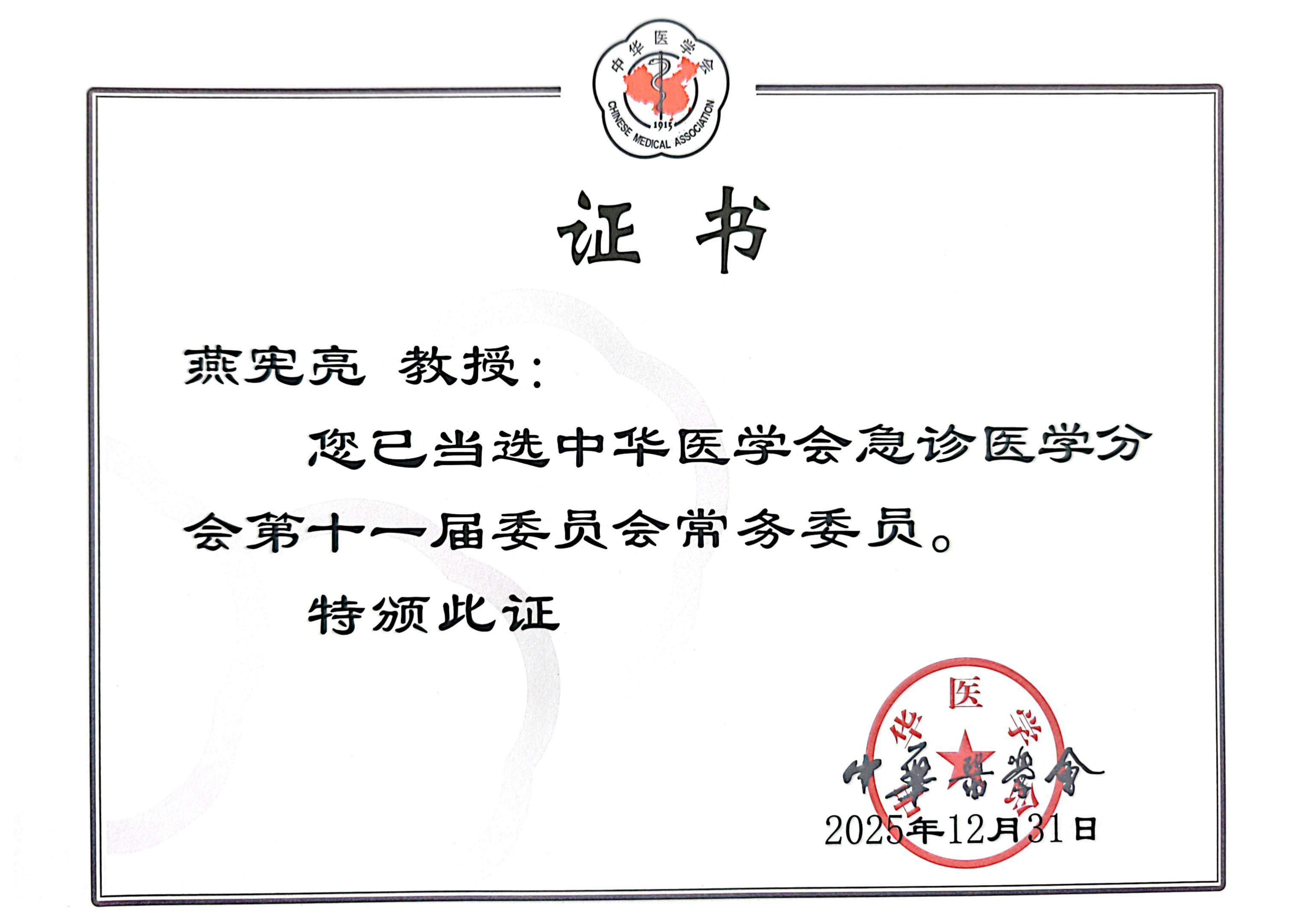 燕宪亮教授的当选,离不开学校和医院党委的正确领导与精准部署,是徐医附院深入推进“五中心一高地” 建设、全力打造研究型医院战略的丰硕成果。作为区域医疗中心,急诊医学科始终将学科建设与人才培养摆在核心位置,不断完善急危重症救治体系,强化人才培养与团队建设,打造了一支技术精湛、作风过硬的急诊医学专业队伍,也为学科带头人的成长提供了优质沃土与广阔舞台。此次当选常务委员,不仅是燕宪亮教授个人的荣誉,更是医院党委领导下学科建设与人才发展双丰收的生动见证,彰显了徐医附院“学科筑峰、人才强院” 战略的显著成效。