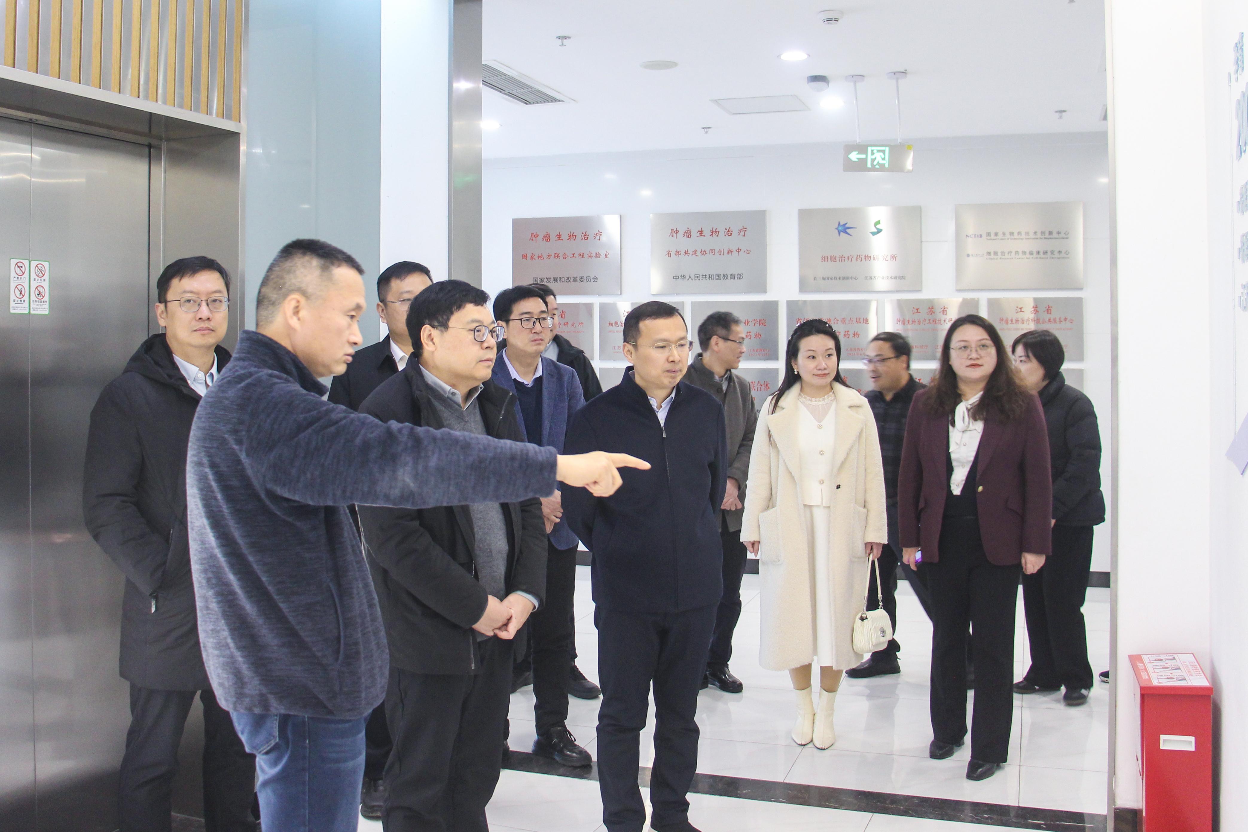 1月27日上午,长三角国家技术创新中心副主任、上海长三角技术创新研究院党委副书记李积宗、生物与医药事业部主任谭逸斌和徐州市相关单位领导一行到我校细胞治疗药物产业学院开展调研。校党委常委、副校长李海洋,细胞治疗药物产业学院领导班子和相关领域教授陪同调研交流。