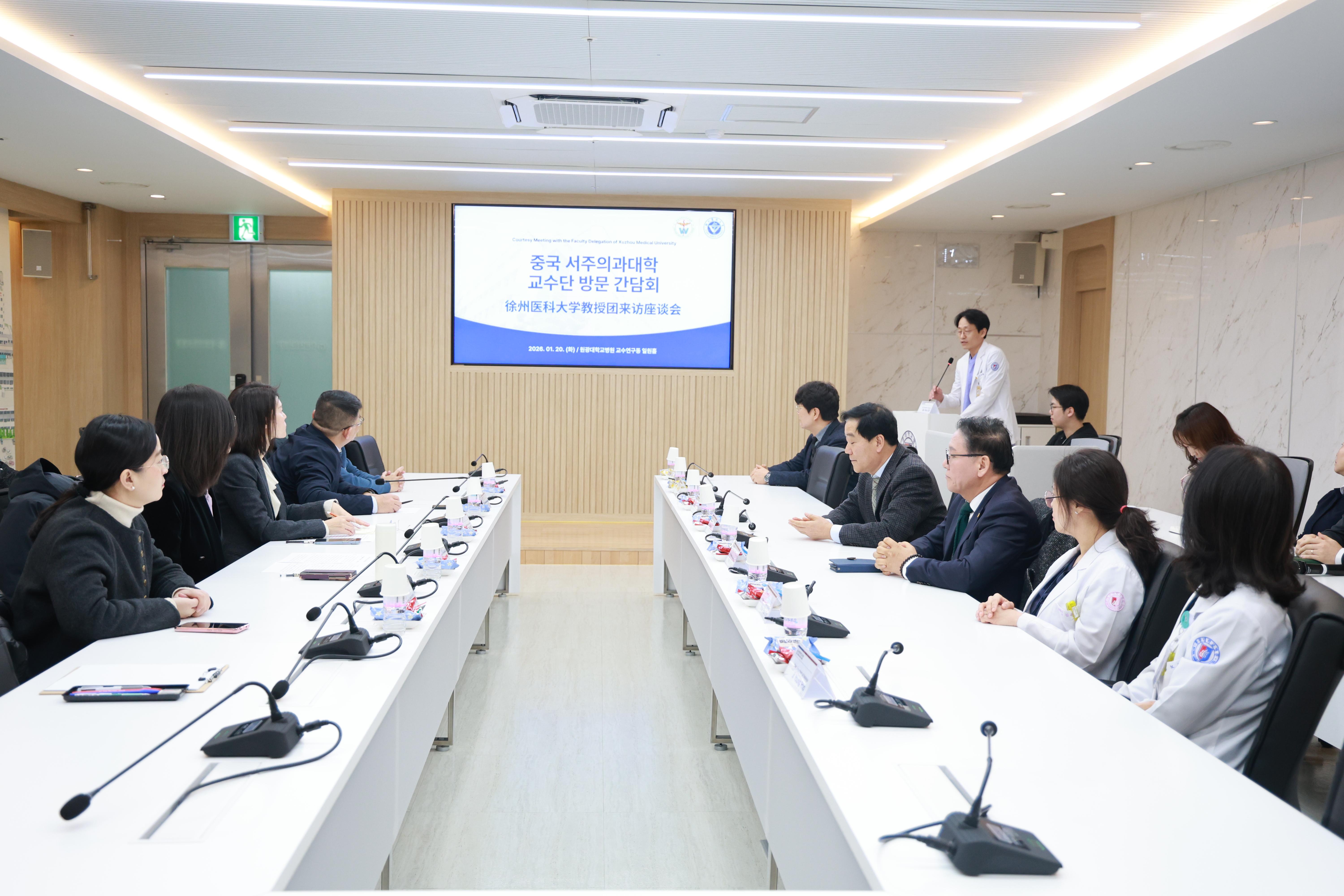 1月20日上午,我校代表团与圆光大学医学院展开面对面交流。圆光大学医学院院长金珉善对目前正在实习的徐州医科大学学生给予了高度评价并对接受影像专业学生实习交流达成初步意向。会后,代表团参观了圆光大学医院医学影像科。