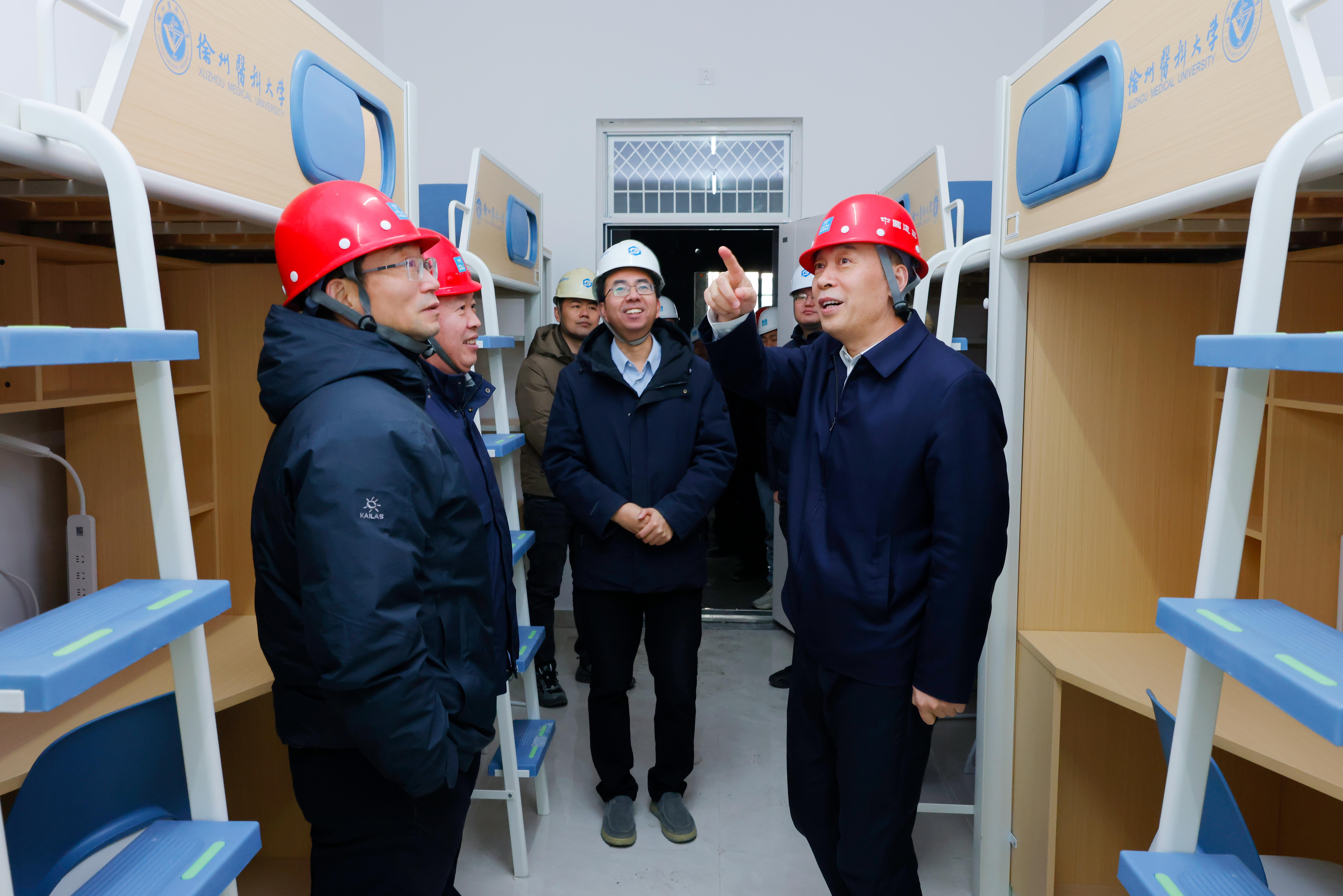 新春将至,暖意先行。2月9日上午,校领导祝木伟、徐海波、孙志明一行深入西校区新建学生宿舍楼项目施工现场,实地调度项目施工进展,亲切慰问坚守一线的施工人员,详细查看宿舍样板间建设情况,强调安全生产底线,部署西校区未来规划改造相关工作,相关职能部门负责人陪同参加。