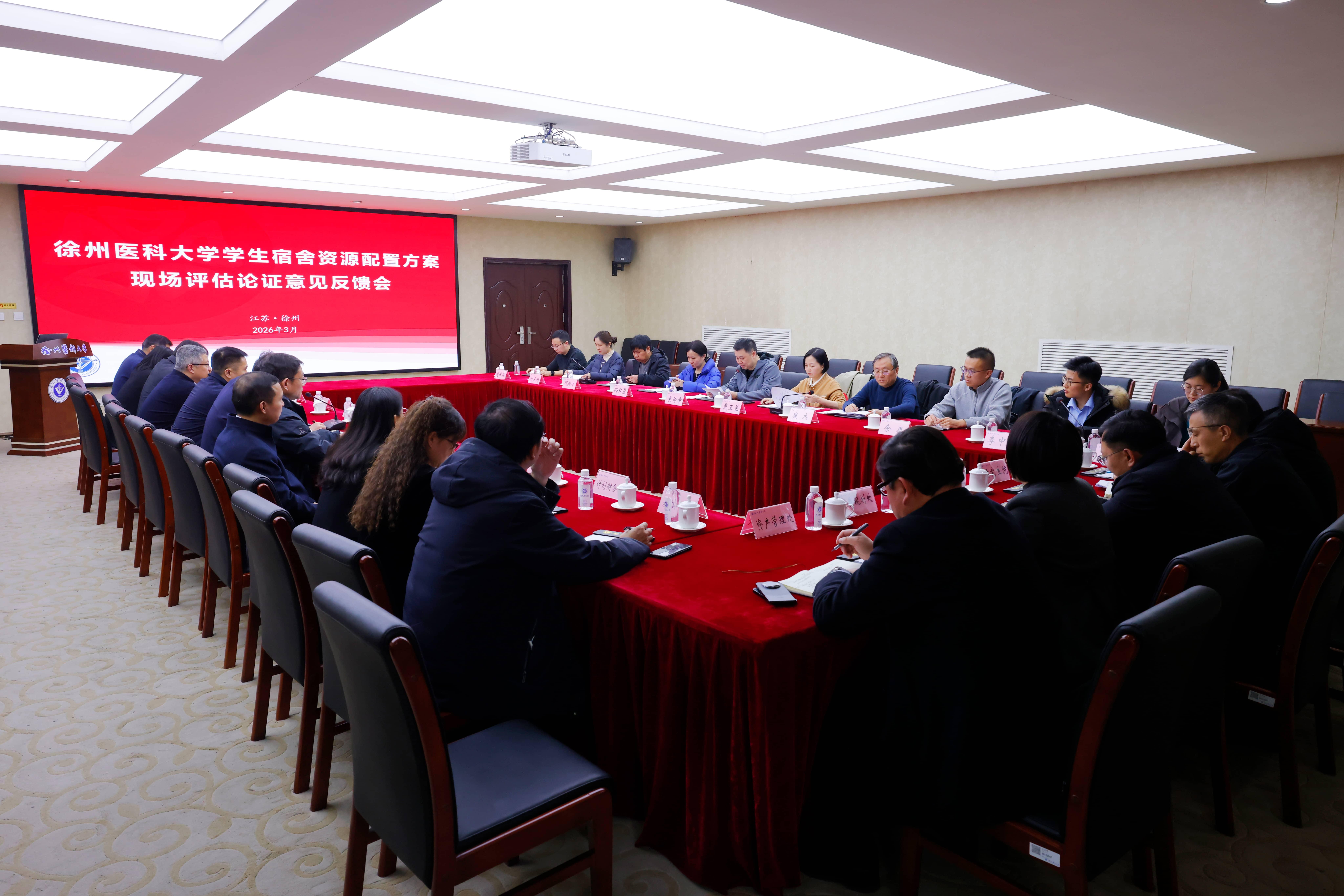 3月11日,省属高校学生宿舍提质扩容三年攻坚行动工作专班组织专家组对我校学生宿舍资源配置方案开展现场评估论证。专家组由省教育厅原副厅长、一级巡视员袁靖宇任组长,专家组成员来自省内办学规划、学科专业、财务审计、工程建设等领域。徐州市自然资源和规划、住房和城乡建设主管部门专家莅临指导。校领导祝木伟、刘慎军、孙志明、郭栋、李海洋,学校学生宿舍提质扩容工作专班成员,项目归口单位管理人员,师生代表等参加相关环节。